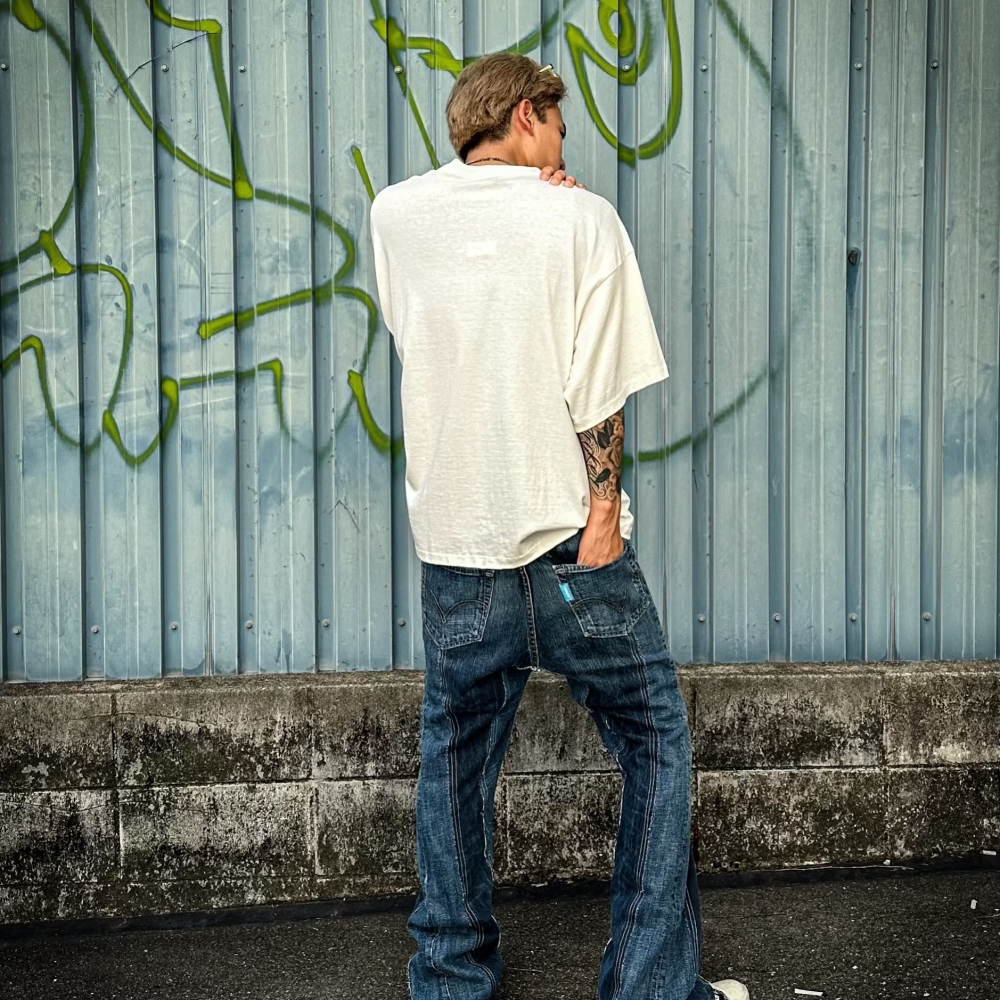 本製品は、輸入古着を資材として解体し縫製、制作した商品です。古着の風合いを活かして制作しているため、多少のキズ・汚れも特徴となり新品商品とは異なります。