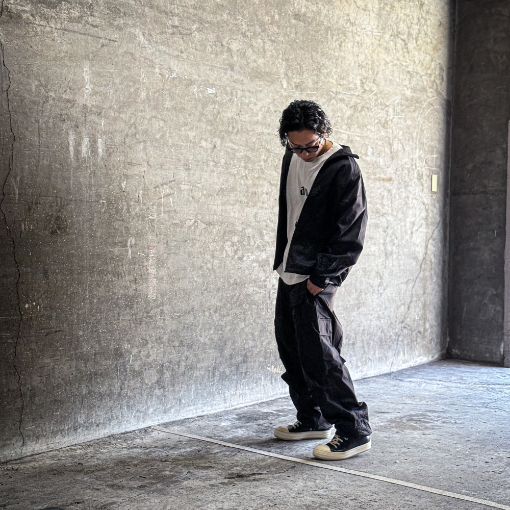 裾にはドローコードが付いており絞る事でシルエットを変化させる事ができます。