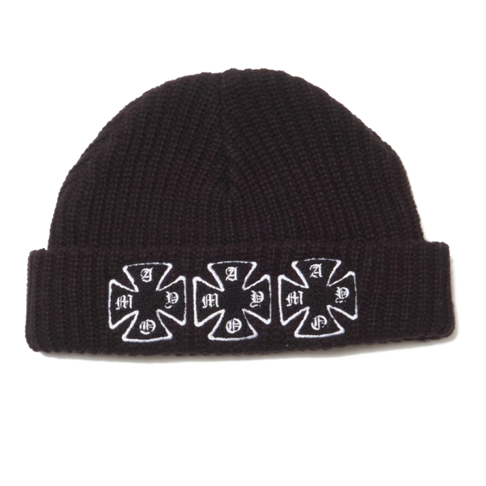 ウールを使用したニット帽になりフロントとバックに刺繍を配置してありますので、前、後ろリバーシブルで気分によってデザインを変える事ができます。