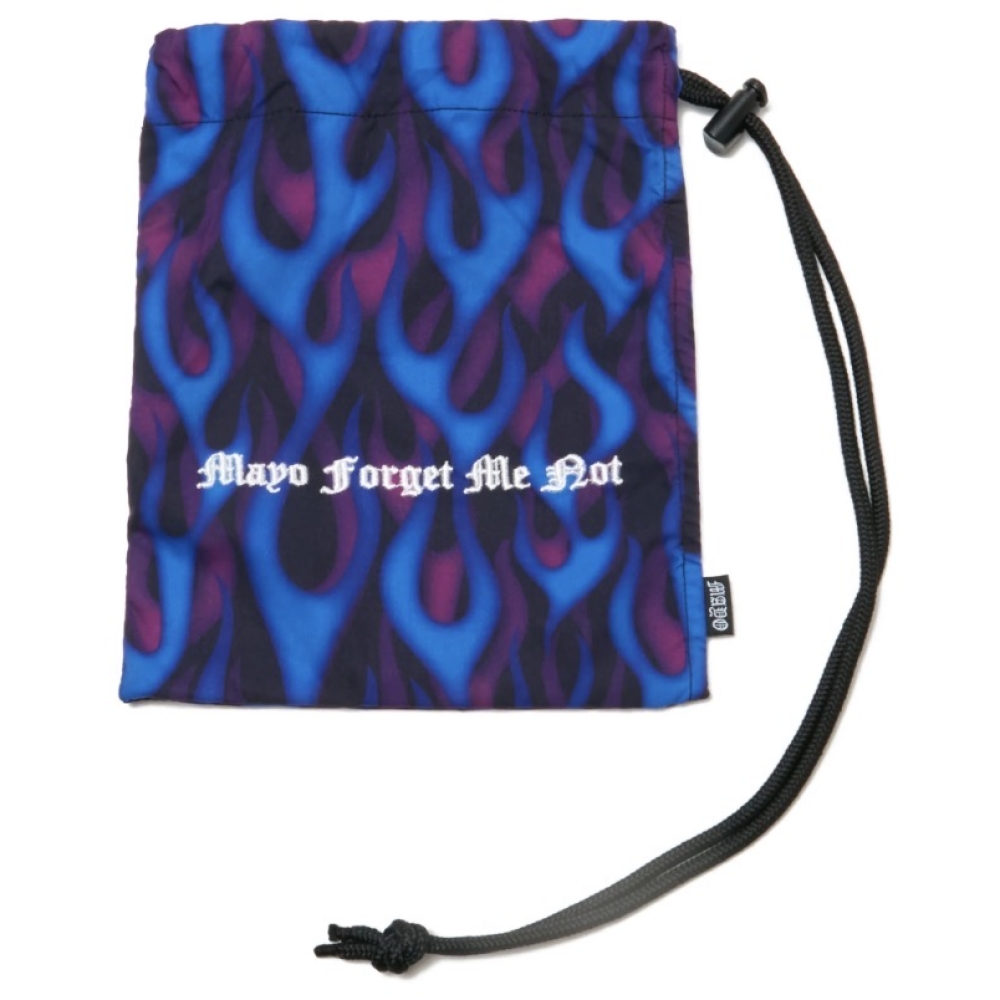 MAYOオリジナルのファイヤーパターンとレオパード柄を使用した巾着バッグ。