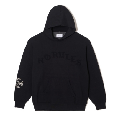 表地にテクニカルナイロン、裏地にウールモヘアを使用し、大胆にロゴが現れるニット構造。